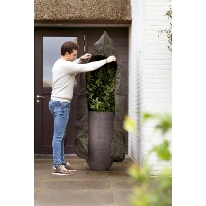 Die Pflanzenabdeckung von Capi ist in einem attraktivem Design und hat eine Größe von 100 x 200 cm, in der Farbe Schwarz. Mit diesem Designwinterschutzvlies schützen Sie Ihre Pflanzen im Winter ideal vor Frost. Diese Funktionsbezüge sind in einem schönen, botanischen Design. Die Abdeckung besteht aus 3 Schutzschichten, die dafür sorgen, dass Ihre Pflanze gut überwintern kann.