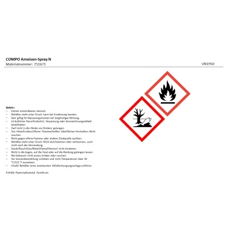 Der Compo Ameisen-Stop N ist eine anwendungsfertige Lösung zur zuverlässigen Beseitigung von Ameisen, Silberfischchen, Asseln, Schaben usw. auf Terrassen, Wegen und im Haus. Der mikroverkapselte Wirkstoff wird erst bei der Aufnahme durch die Insekten freigesetzt. Der lästiger Sprühbelag und die Geruchsbelästigung treten nicht auf.