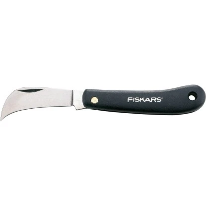 Die Fiskars Gartenhippe K62 ist das Taschenmesser für den Gärtner. Sie eignet sich für verschiedene Schnittarbeiten mit spitz zulaufender, einseitig geschliffener Schneide. Die gebogene Klinge ist aus hochwertigem, poliertem Stahl (HRC 58) gefertigt.