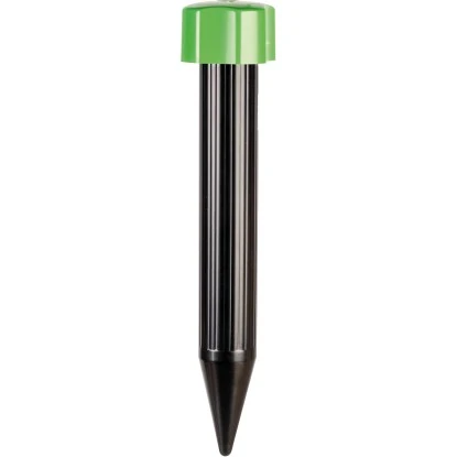 Der Gardigo Maulwurf-Abwehr Mini sendet hochfrequenten Töne im Boden aus, welche ungebetene Maulwürfe fern halten. Das Gerät wird zur Anwendung in den Erdboden gesteckt. Die Wühltiere orientieren sich unter der Erde über Ultraschall-Töne, die für Menschen nicht hörbar sind. Das Aussenden der hochfrequenten Töne des Maulwurf-Abwehr Minis von Gardigo wird den Tieren schnell lästig und sie versuchen einen ruhigeren Ort zu finden, wodurch Sie Ihre Ruhe genießen können. Die kompakte Bauweise der Maulwurf-Abwehr wird mit zwei handelsüblichen Mignon-Batterien (oder auch umweltfreundlichen, wiederaufladbaren Akkus betrieben. Dadurch kann die Maulwurf Abwehr von Gardigo ganzjährig eingesetzt werden. Es wird empfohlen, den Maulwurf-Vertreiber zunächst in der Nähe des Haus anzubringen und dann im zweiwöchigen Abständen immer näher an die Grundstücksgrenze zu versetzen. So werden die Wühltiere aus dem Garten herausgetrieben. Die Batterien sind nicht im Lieferumfang enthalten. Der Batteriewechsel kann erfolgen ohne das Gerät aus dem Boden zu entnehmen.