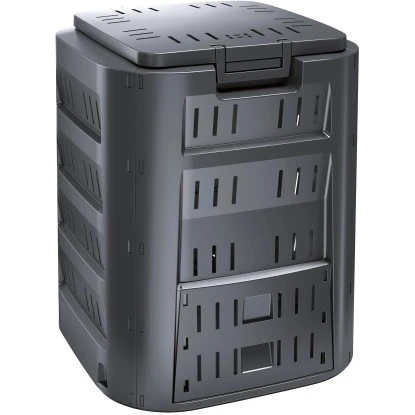 Der praktische Komposter Compogreen mit 210 Liter Fassungsvermögen eignet sich sehr gut zum Recyceln der Garten- und Küchenabfälle. Man gewinnt so nährstoffreiche Erde für den Garten. Durch das einfache Stecksystem ist er unkomplirziert und einfach aufzubauen. Der obere Deckel ist mit einer Windsicherung versehen, dieser dient zudem auch der besseren Luftzirkulation. Im unteren Bereich befindet sich eine Schiebeklappe zur einfachen Entnahme des Humus.