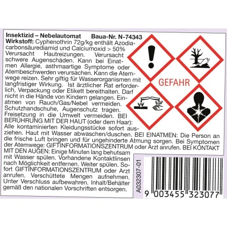 Der Kwizda Nebelautomat erzeugt einen thermischen Nebel zur Bekämpfung von Insekten und Ungeziefer, wie z.B. Käfer, Wespen, Motten, Spinnen, Silberfischchen etc. Der Nebelautomat eignet sich zur Anwendung in geschlossenen Räumen.