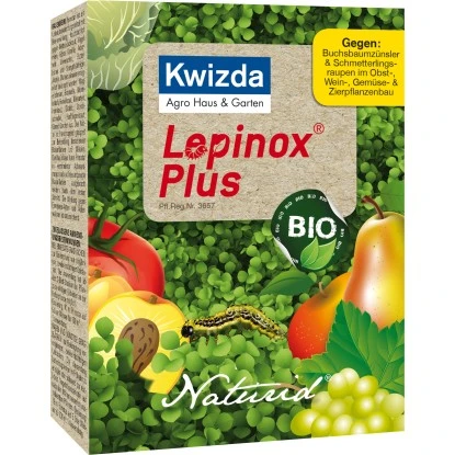 Lepinox plus ist ein biologisches Insektizid zur selektiven Bekämpfung von schädlichen Schmetterlingsraupen im Obst-, Wein-, Gemüse und Zierpflanzenbau (Freiland und unter Glas).
