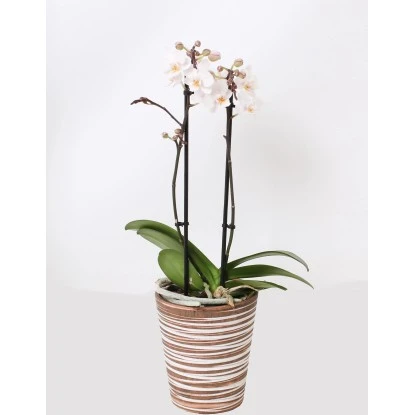 Schmetterlingsorchidee 2-Trieber Weiß Im Keramik-Gefäß Topf-Ø Ca. 12 Cm