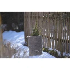 Pflanzen mit ausladenden Kronen lassen sich bequem in den Thermomantel hüllen. Zunächst wird die untere Kordel eng zugezogen, dann legen Sie den Vliesmantel seitlich um die Pflanze und schließen den Reißverschluss von unten nach oben. Zum Schluss die obere Kordel zuziehen und der Thermomantel schließt Ihre Pflanzen vollständig ein. Er ist licht- und luftdurchlässig, vermindert aber Verdunstung und schützt vor Spannungsrissen an der Rinde.